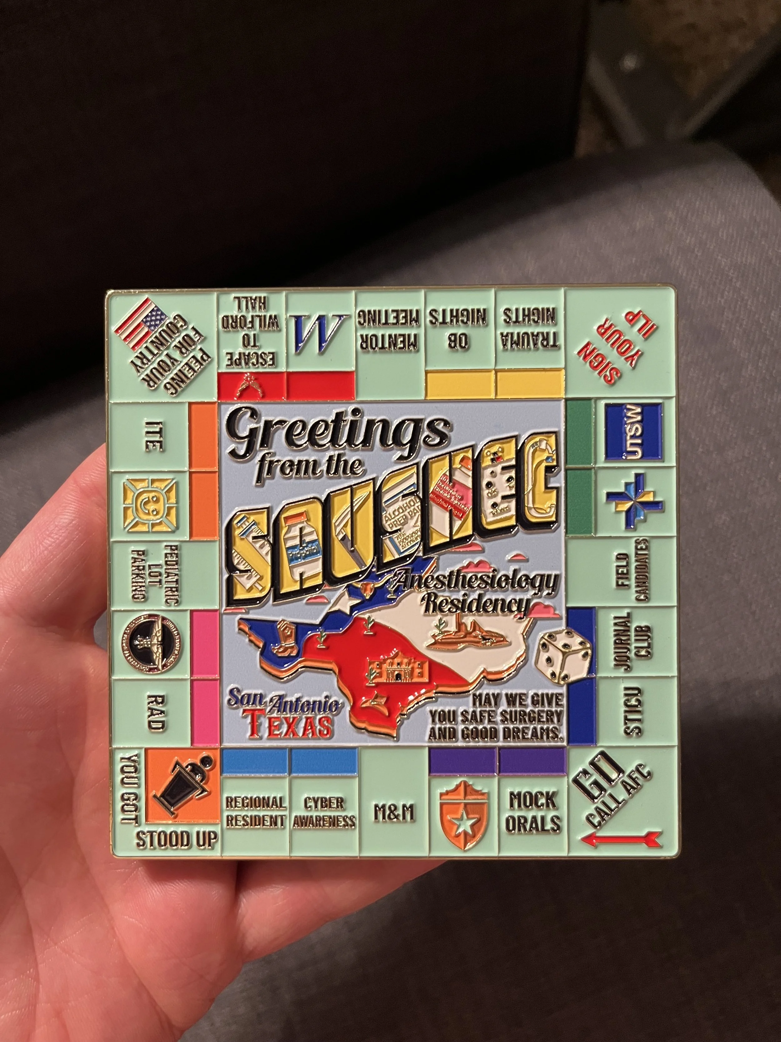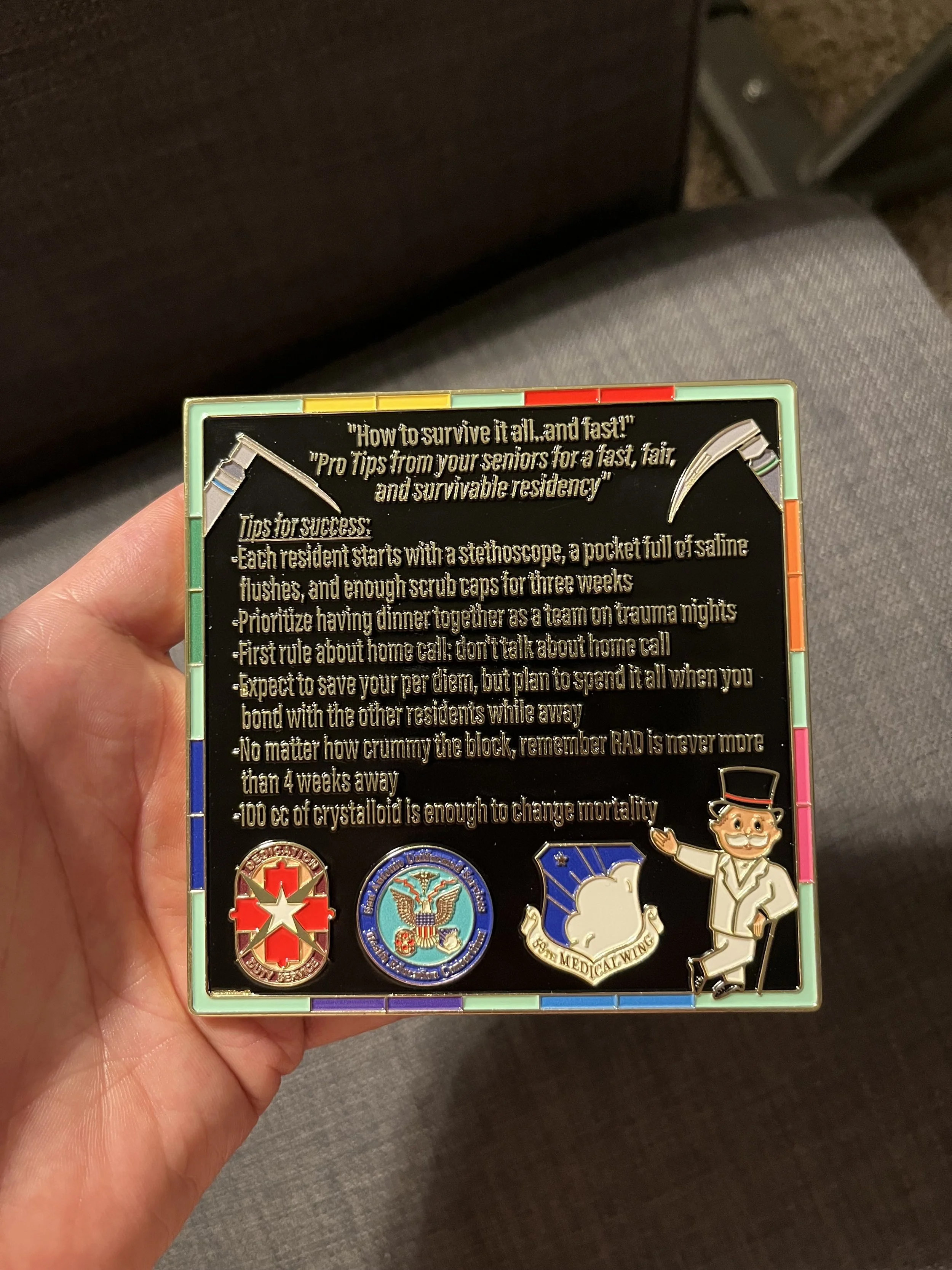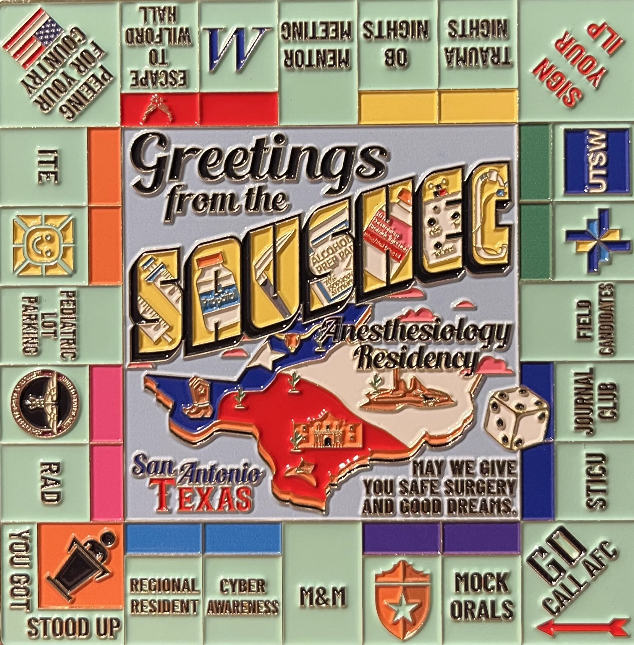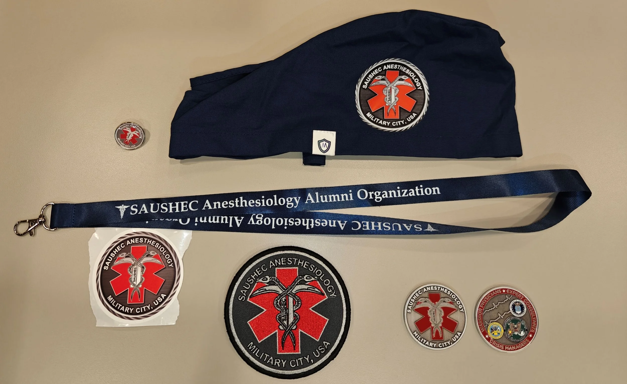 Scrub cap (we’ll reach out for customization!), pin, lanyard, sticker, patch, coin